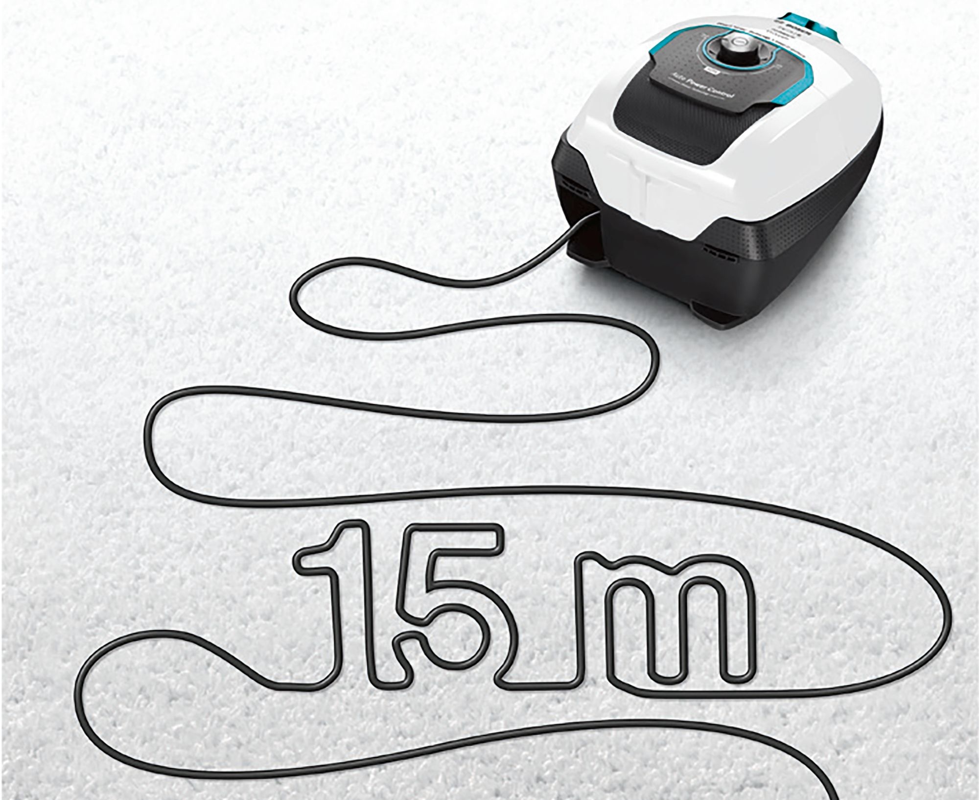 Extra lange kabel voor 15m actieradius minimaliseert het wisselen van stopcontact