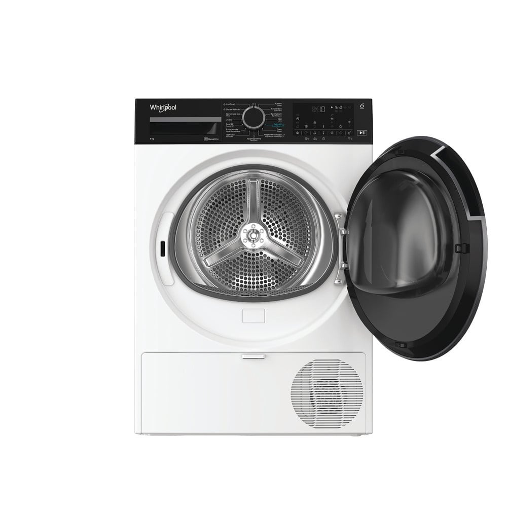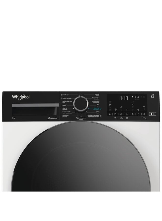 Kenmerken van deze Whirlpool vrijstaande droger: royale trommelcapaciteit van 8,0 kg. Exclusieve 6th SENSE technologie bewaakt constant de vochtigheidsgraad in de trommel, beschermt uw kleding en geeft ideale droogresultaten. De droger communiceert met uw wasmachine om informatie over het wasprogramma te ontvangen, om automatisch het juiste droogprogramma in te stellen voor elk soort wasgoed. Elegant ontwerp met afgeschermde deur. Met stoom drogen voor een delicate en hygiënische werking om dingen op te frissen met minder kreukels.