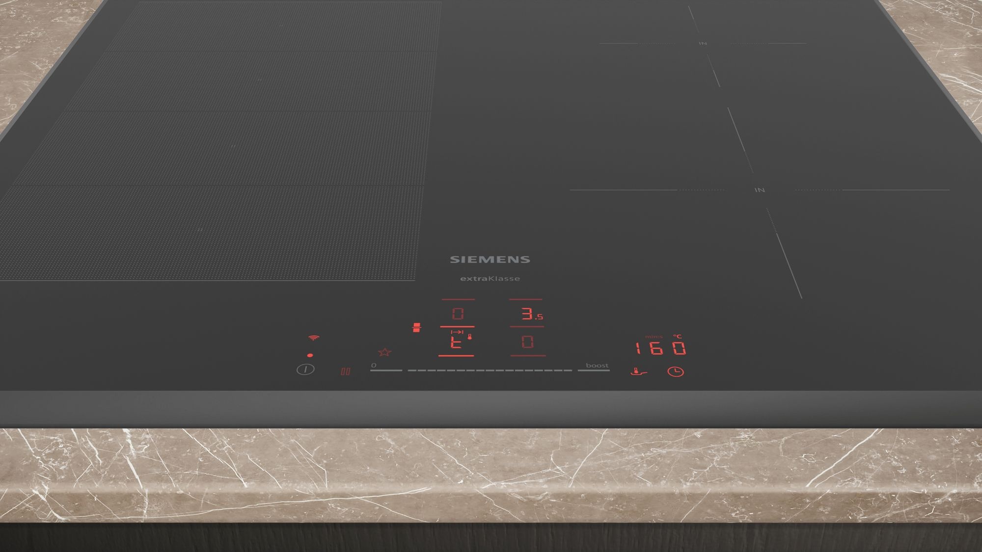powerBoost-functie voor alle inductiekookzones : kook water sneller dankzij 50% meer energie dan op de hoogste stand. |
