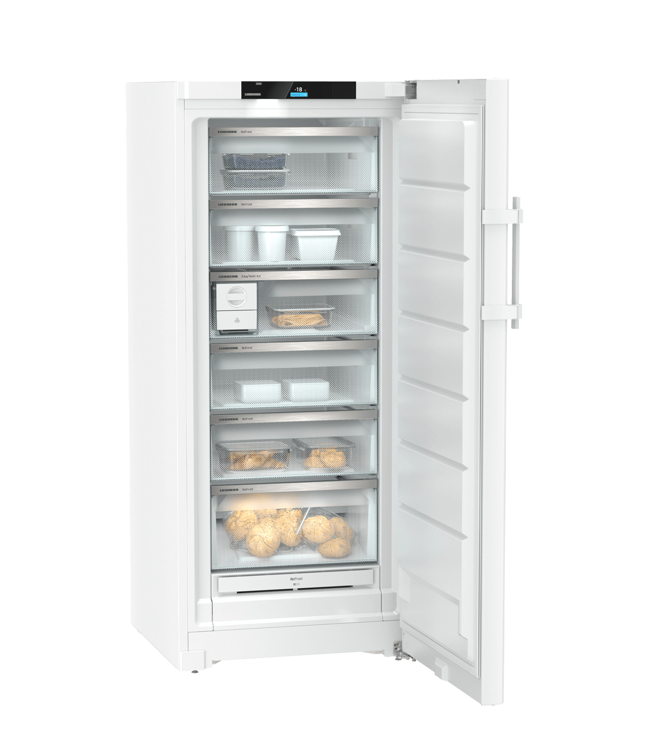 Deze energiezuinige NoFrost vrieskast met Touch & Swipe kleurendisplay hoeft u nooit te ontdooien. De LED verlichting biedt ook in het donker optimaal zicht en met de statusindicator ziet u in een oogopslag of het apparaat goed functioneert. De SpaceBox biedt plaats aan grote verpakkingen en met EasyTwist-Ice maakt u in een handomdraai 60 ijsblokjes. De vriesladen op telescooprails lopen soepel en zijn volledig uittrekbaar. Dankzij FrostProtect geschikt voor plaatsing in een onverwarmde ruimte van -15 °C. Geschikt voor smarthome toepassingen.