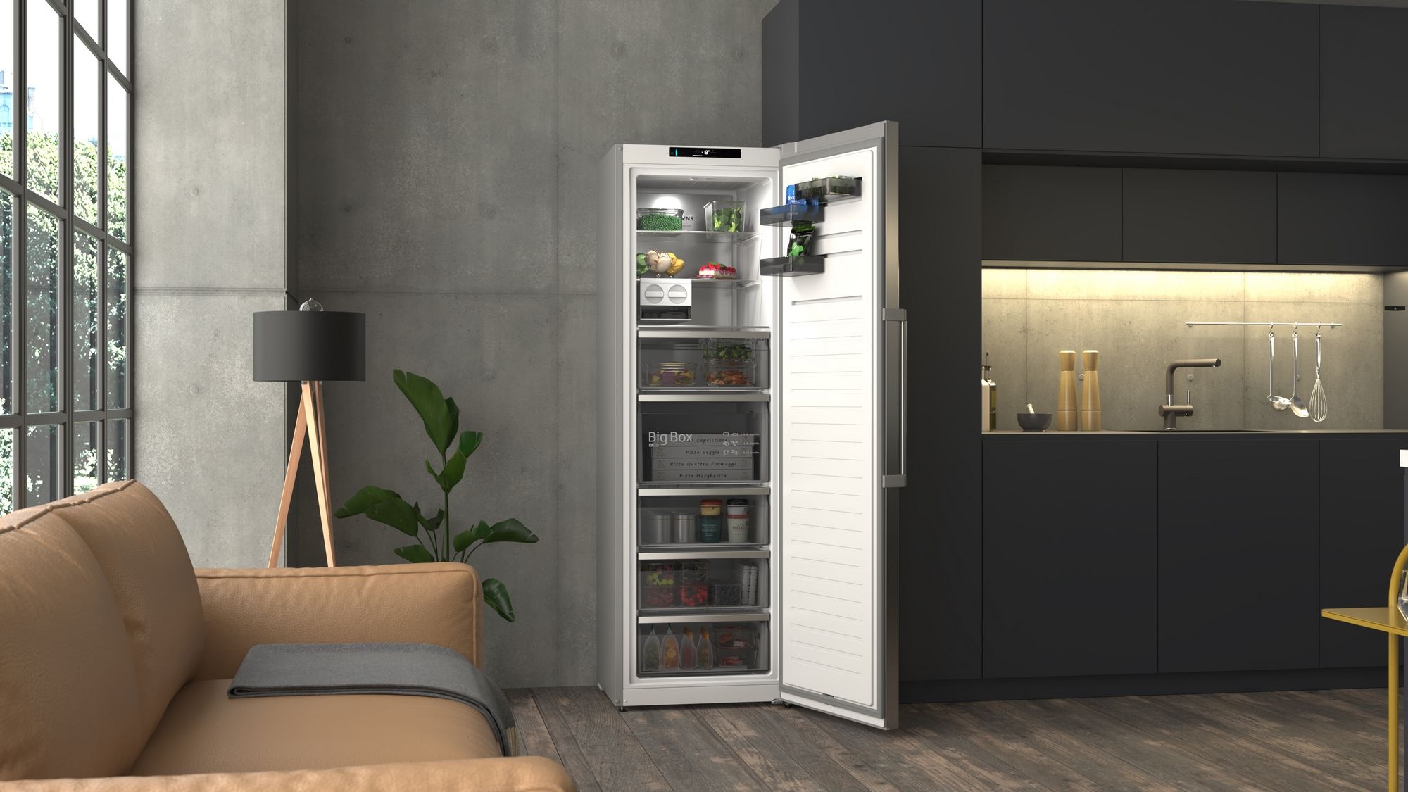 Vrijstaande vriezer met Total noFrost voor nooit meer handmatig ontdooien, een verrassend grote inhoud om moeiteloos levensmiddelen te bewaren en een handgreep voor gemakkelijk openen.