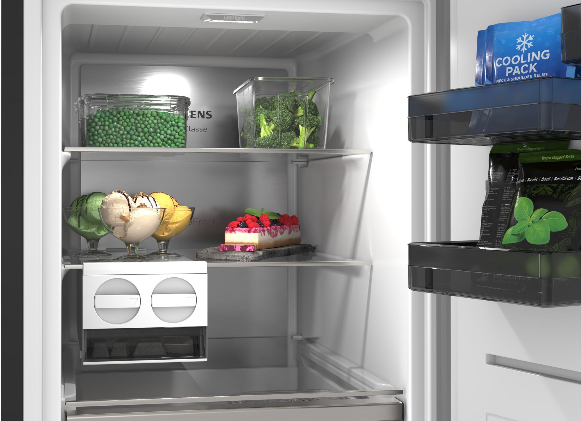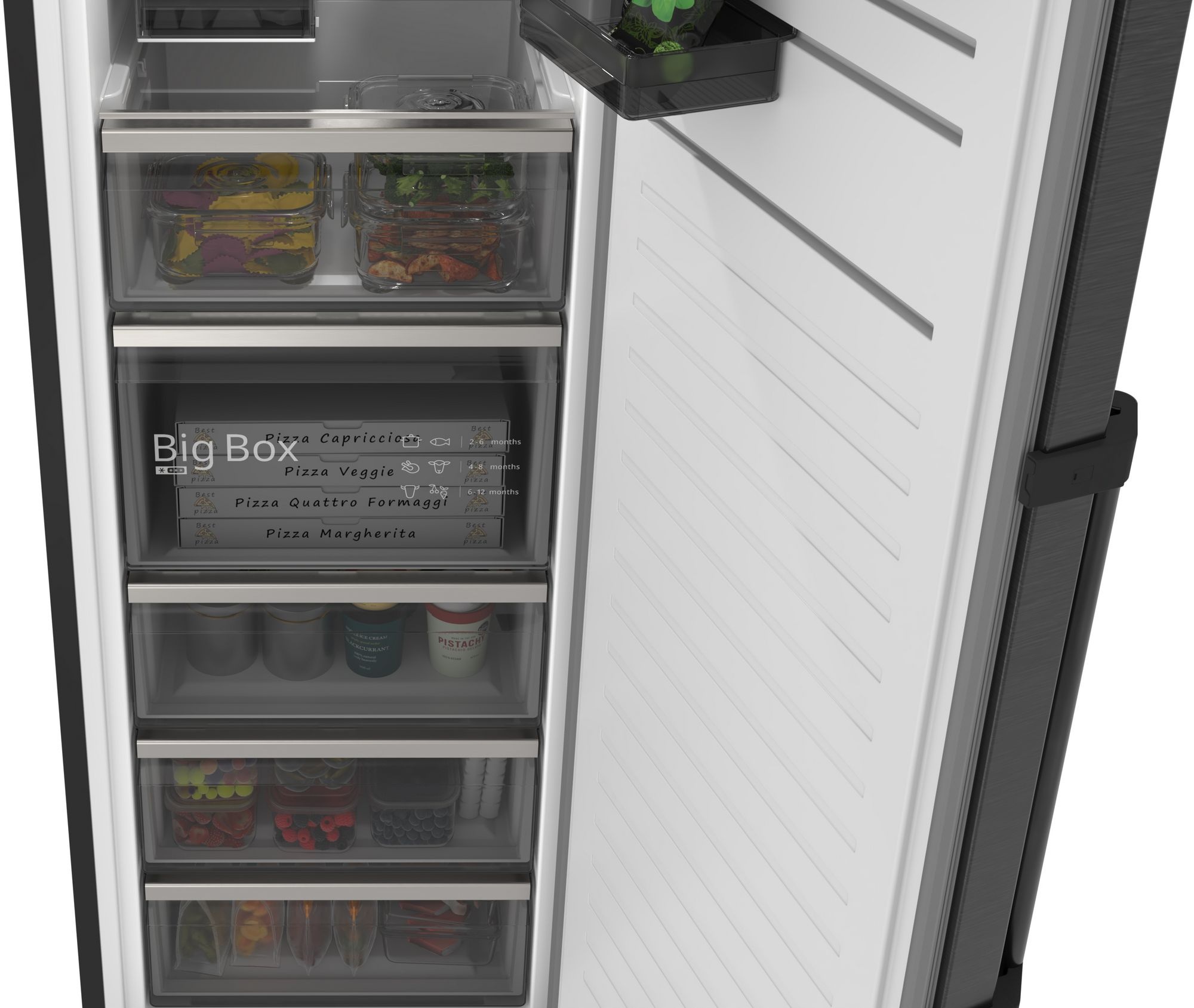 Vrijstaande vriezer met Total noFrost voor nooit meer handmatig ontdooien, een verrassend grote inhoud om moeiteloos levensmiddelen te bewaren en een handgreep voor gemakkelijk openen.