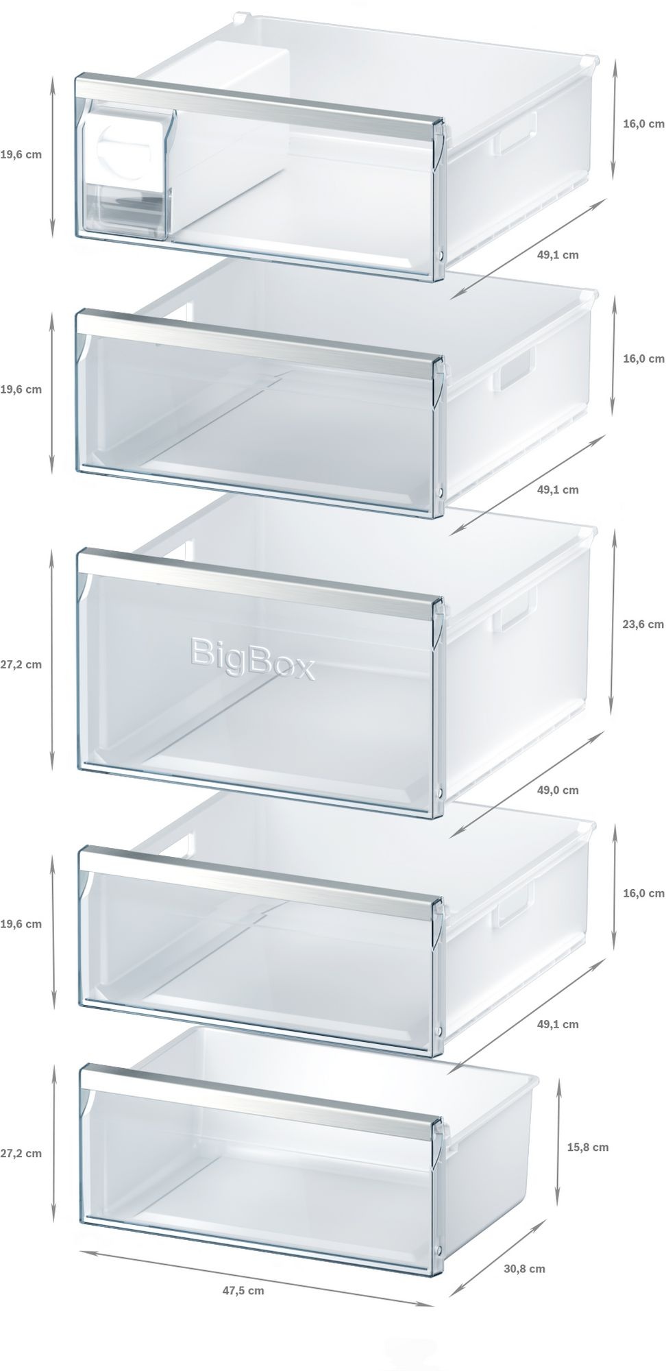 5 transparante vriesladen |