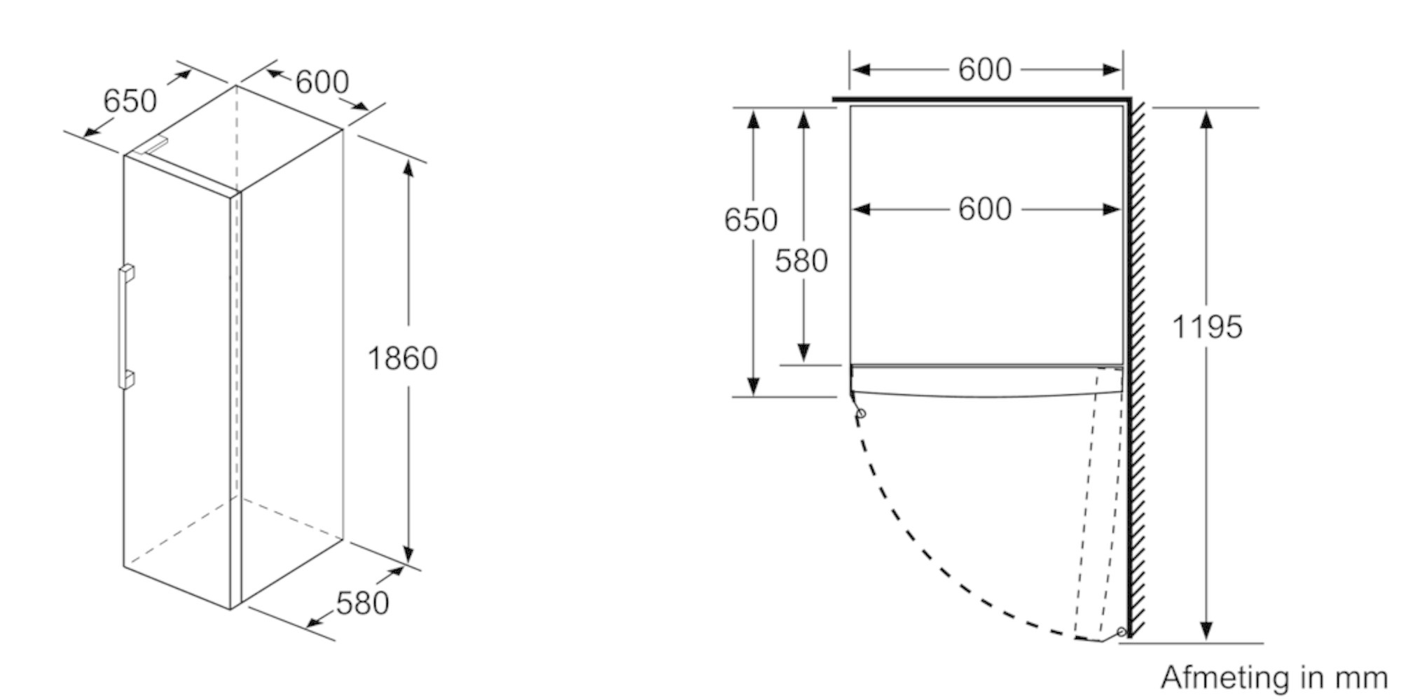 161 x 60 x 65 cm - Klimaatklasse: SN-T