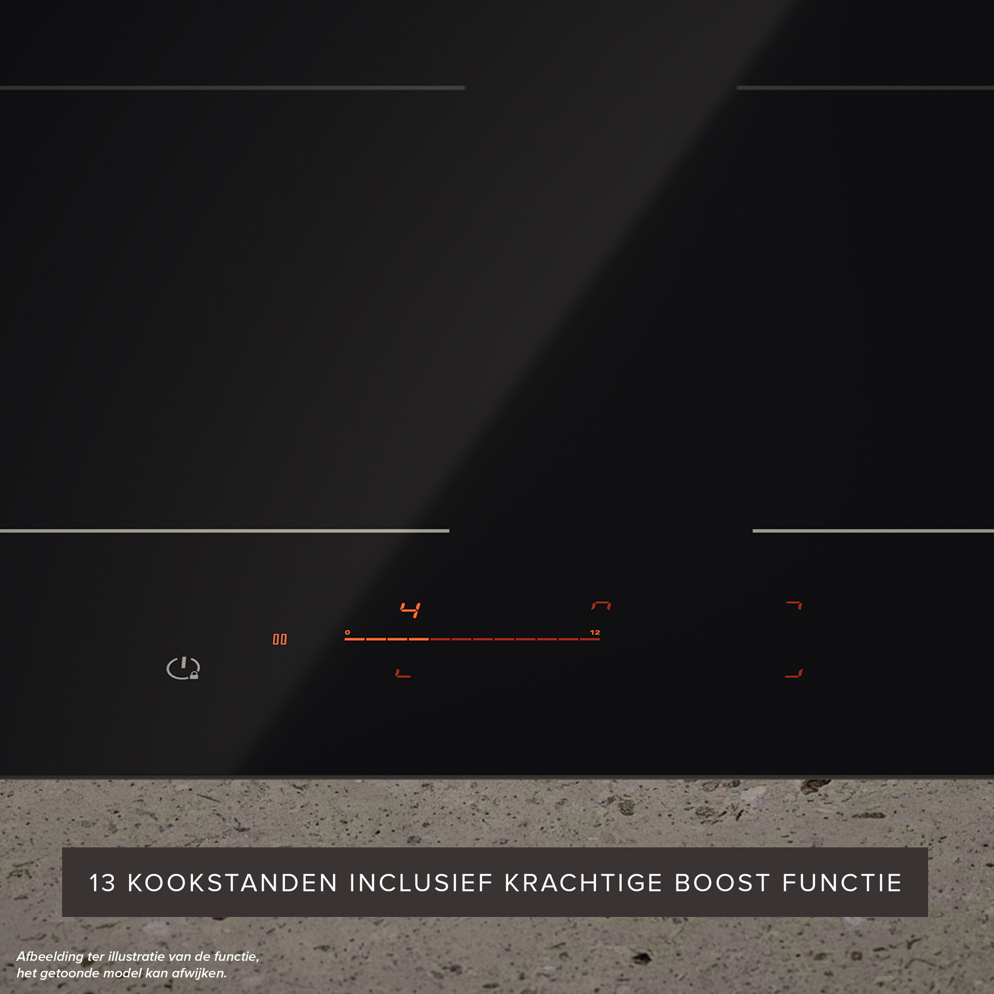 | Elegant tijdloos glas design | Deze inductiekookplaat is gemaakt van zwart glas. De stijlvolle inductiekookplaat is geschikt voor opbouw en vlak geïntegreerd in je werkblad. Hierdoor sluit het naadloos aan op het design van je keuken. |