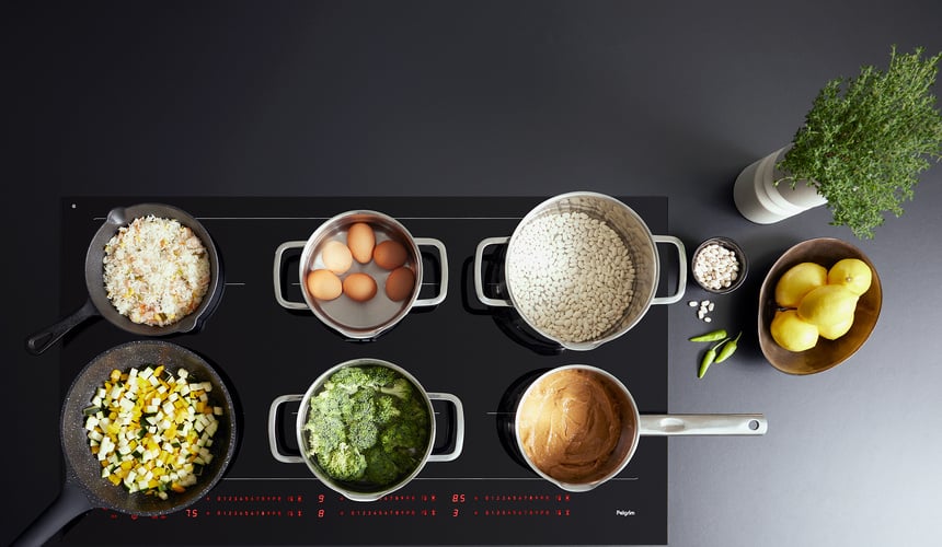 Cheffunctie; automatische instelling van drie kookzones in stand 3, 6 en 9 Automatische pandetectie; de kookplaat herkent je pan en activeert automatisch de bediening van de juiste kookzone.