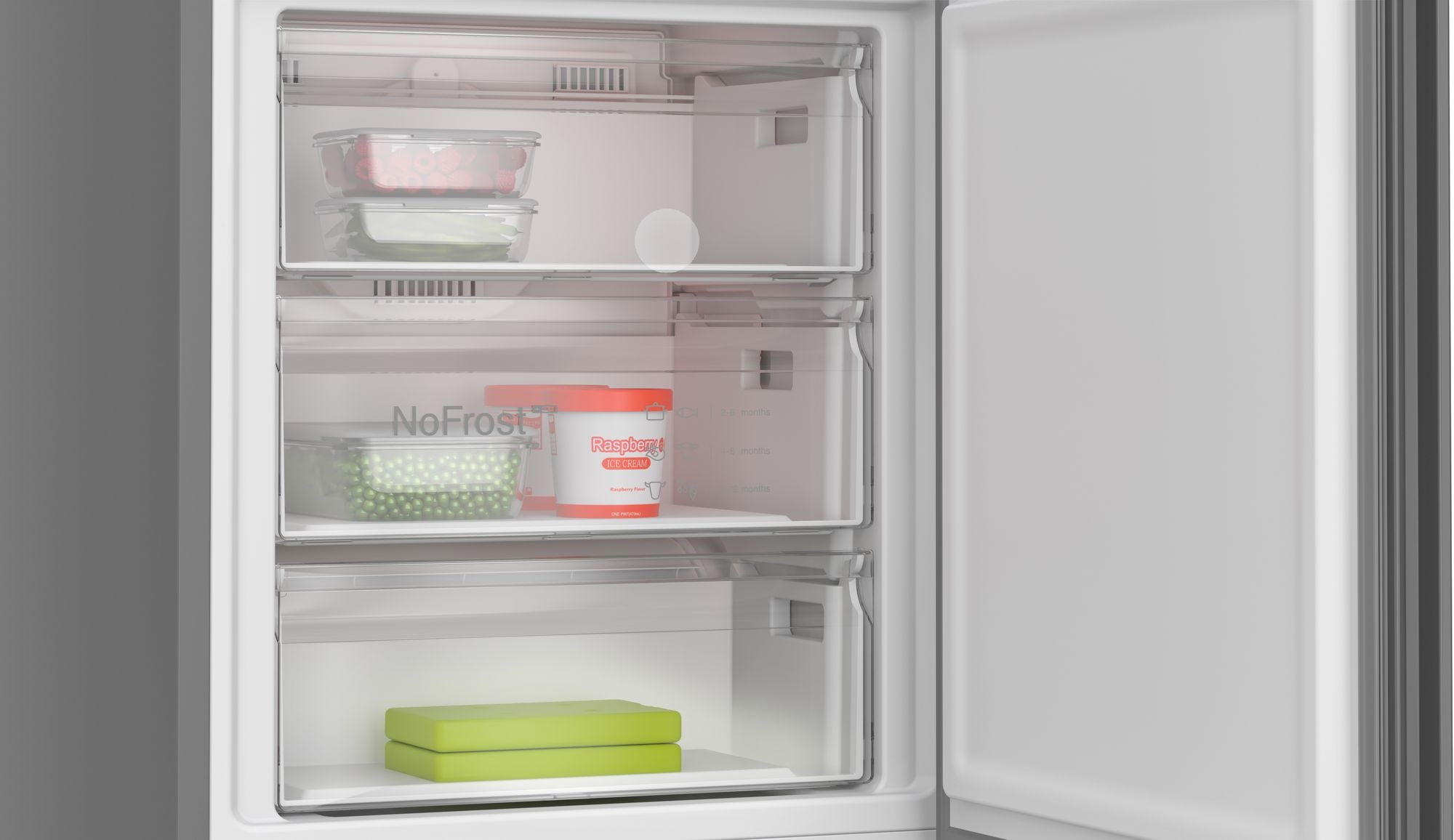 1 VitaFresh-lade met luchtvochtigheidsregeling: groente en fruit blijven langer vers en vitaminerijk. 1 VitaFresh ◄0°C►-lade: vis en vlees blijven langer vers. |