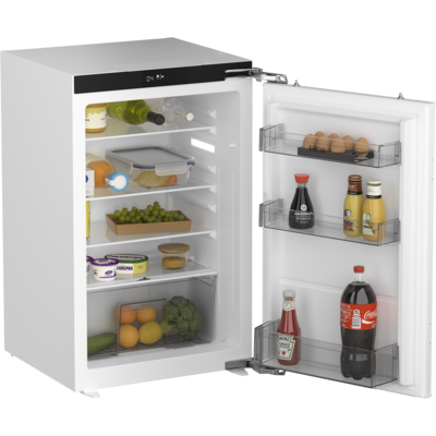 Het koelgedeelte heeft een netto inhoud van 126 liter en is voorzien van vier glazen legplateaus van veiligheidsglas en een handige groentelade met luchtvochtigheidsregeling. De deur heeft een verwisselbare draairichting. Zo kun je voor het plaatsen bepalen welke draairichting de deur moet hebben. De ETNA KKD7088T is een inbouw koelkast die wordt geïnstalleerd met het deur-op-deursysteem voor eenvoudige installatie. Dit model is voorzien van zelfsluitende deur vanaf 20°. Blijft de deur toch te lang open staan? Dan geeft de koelkast een alarmsignaal af. Ook is het model voorzien van een alarm bij te hoge temperatuur. Tot slot is de ETNA KKD7088T voorzien van SuperCool functie om jouw boodschappen snel op de juiste temperatuur te brengen.