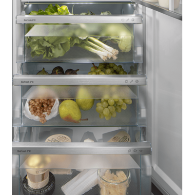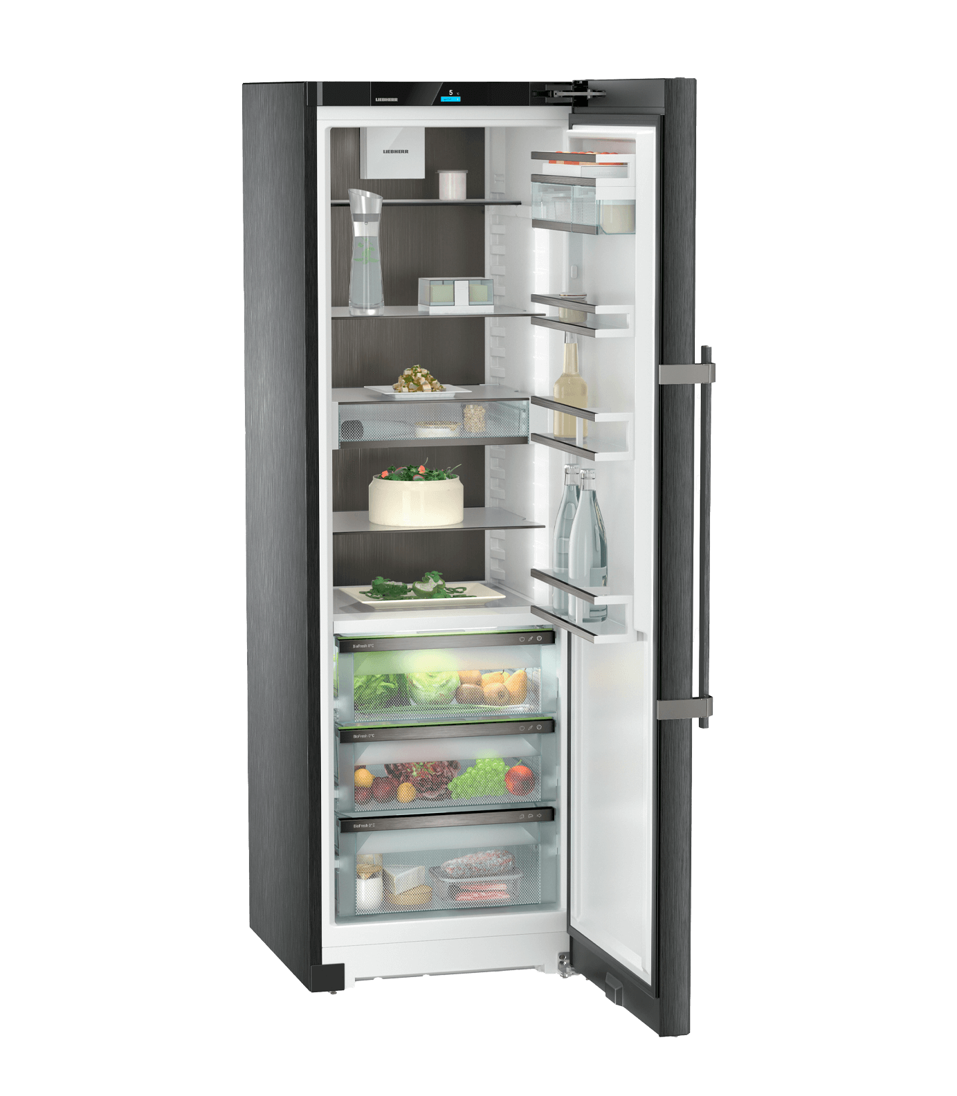 In deze BlackSteel koelkast aan luxe geen gebrek. De droge SmartSteel achterwand en het Touch & Swipe kleurendisplay zijn niet alleen mooi maar ook handig. De LightTower verlicht ieder hoekje van het koeldeel en de deur met SoftSystem sluit zacht. In de 3 BioFresh laden op SoftTelescopic rails blijven groenten en fruit tot 3x langer vers dan in normale groenteladen. De VarioSafe biedt de perfecte opbergplek voor kleine potjes en het FreshAir filter zorgt voor een fris interieur. Standaard geschikt voor smarthome toepassingen.