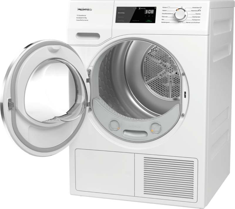 De Miele EcoDry-technologie garandeert een constant laag energieverbruik en optimale droogtijden. Door de doeltreffende combinatie van het gepatenteerde Miele filtersysteem en de onderhoudsvrije warmtewisselaar hebben pluizen geen kans om de warmtewisselaar te verstoppen en zo de capaciteit te verlagen. Miele warmtepompdrogers werken met EcoDry altijd zuinig, gedurende de hele levensduur van het apparaat.