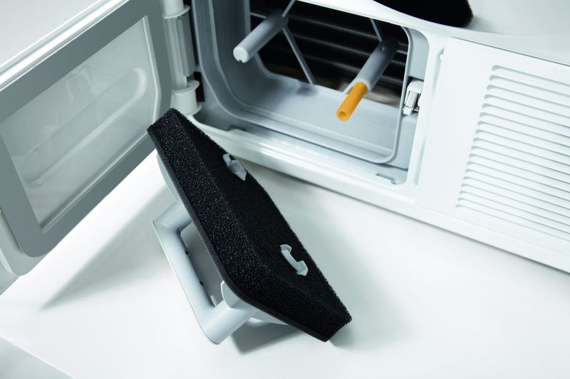 In Miele-warmtepompdrogers met warmtepomptechnologie wordt de warmtewisselaar beschermd door een effectief en makkelijk te reinigen filtersysteem. Zo hoeft u de warmtewisselaar zelf nooit te reinigen. Op deze manier is het zeker dat het energieverbruik altijd laag blijft, gedurende de totale levensloop van de droger.