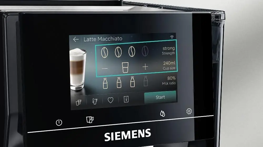 Internationale koffiespecialiteiten op een intuïtieve touchdisplay - met verlichte koffieuitloop én een kopjeswarmer.