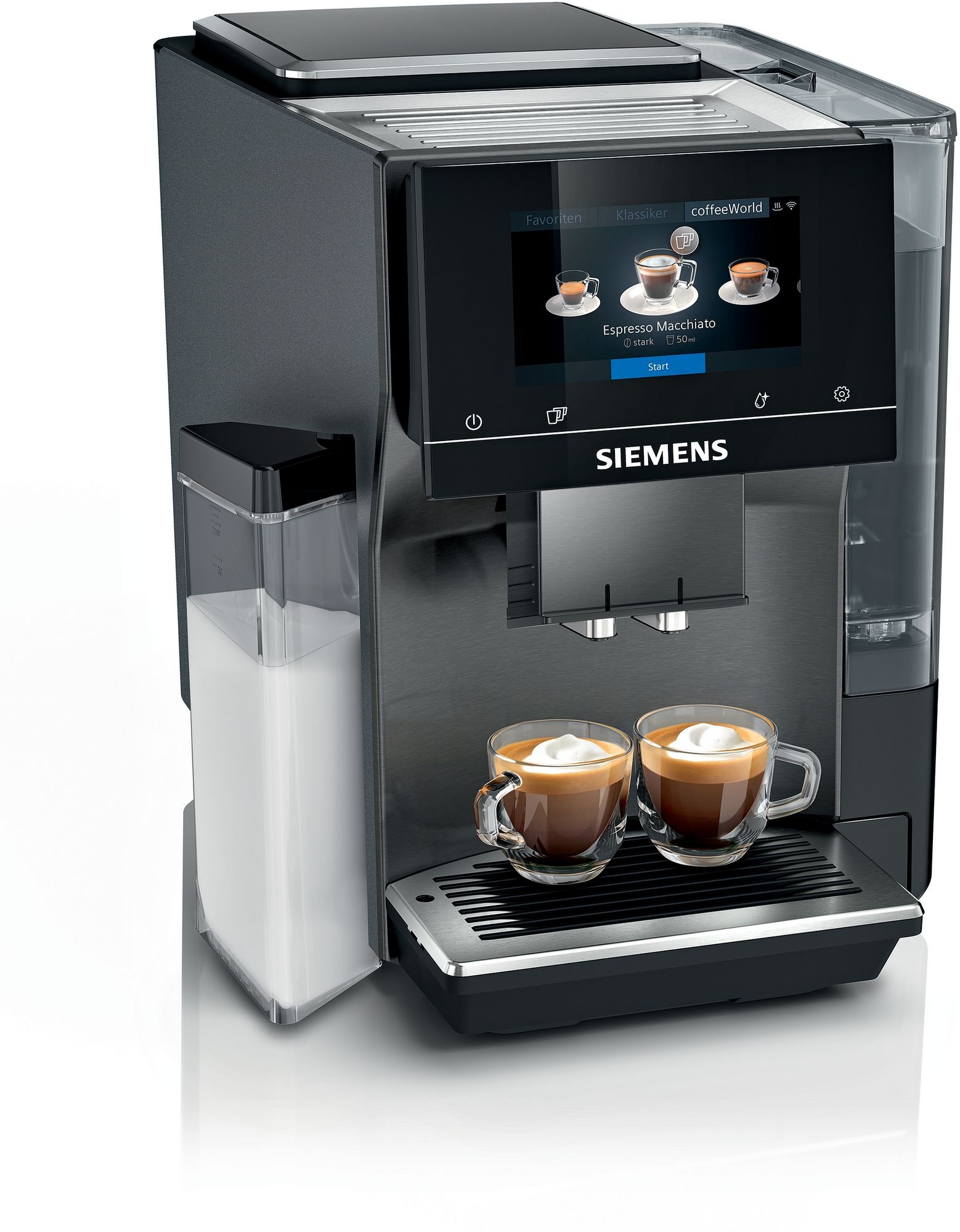 Internationale koffiespecialiteiten en een geïntegreerde melkschuimoplossing komen samen met een intuïtief full-touch scherm. Daarbij luxe verrijkingen zoals een geïllumineerde uitloop en kopjesverwarmer.
