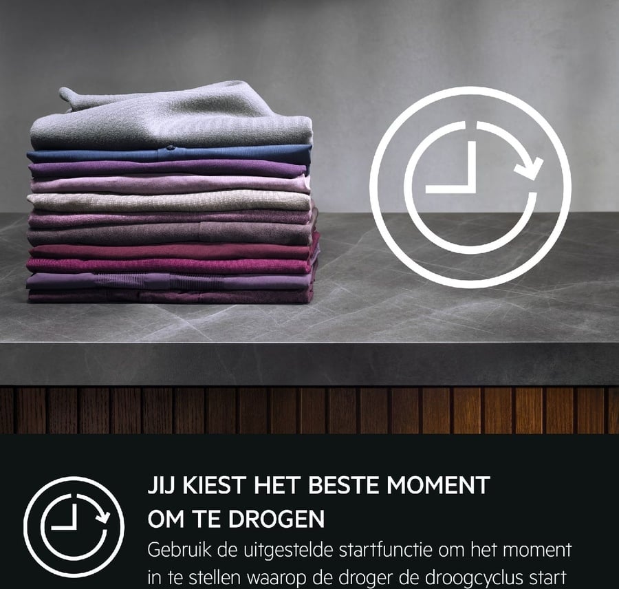 - SensiDry®-technologie met warmtepompsysteem droogt door de precieze sensoren uw kleding op slechts de helft van de temperatuur