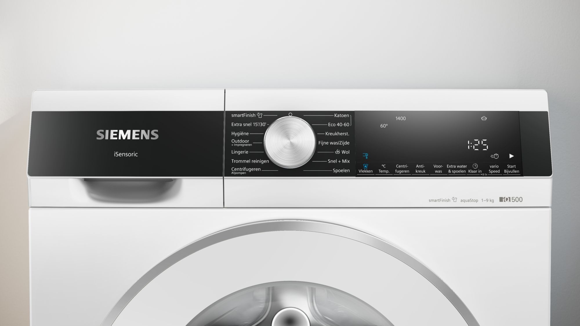 Als je droge was hebt die gekreukt is, biedt het smartFinish-programma van je wasmachine uitkomst. Het introduceert een zachte dosis stoom die kreukels vermindert. Zo ben je minder tijd kwijt aan strijken. Met smartFinish worden zelfs sterk gekreukte items in slechts 20 minuten gladgestreken. Een echte helpende hand.