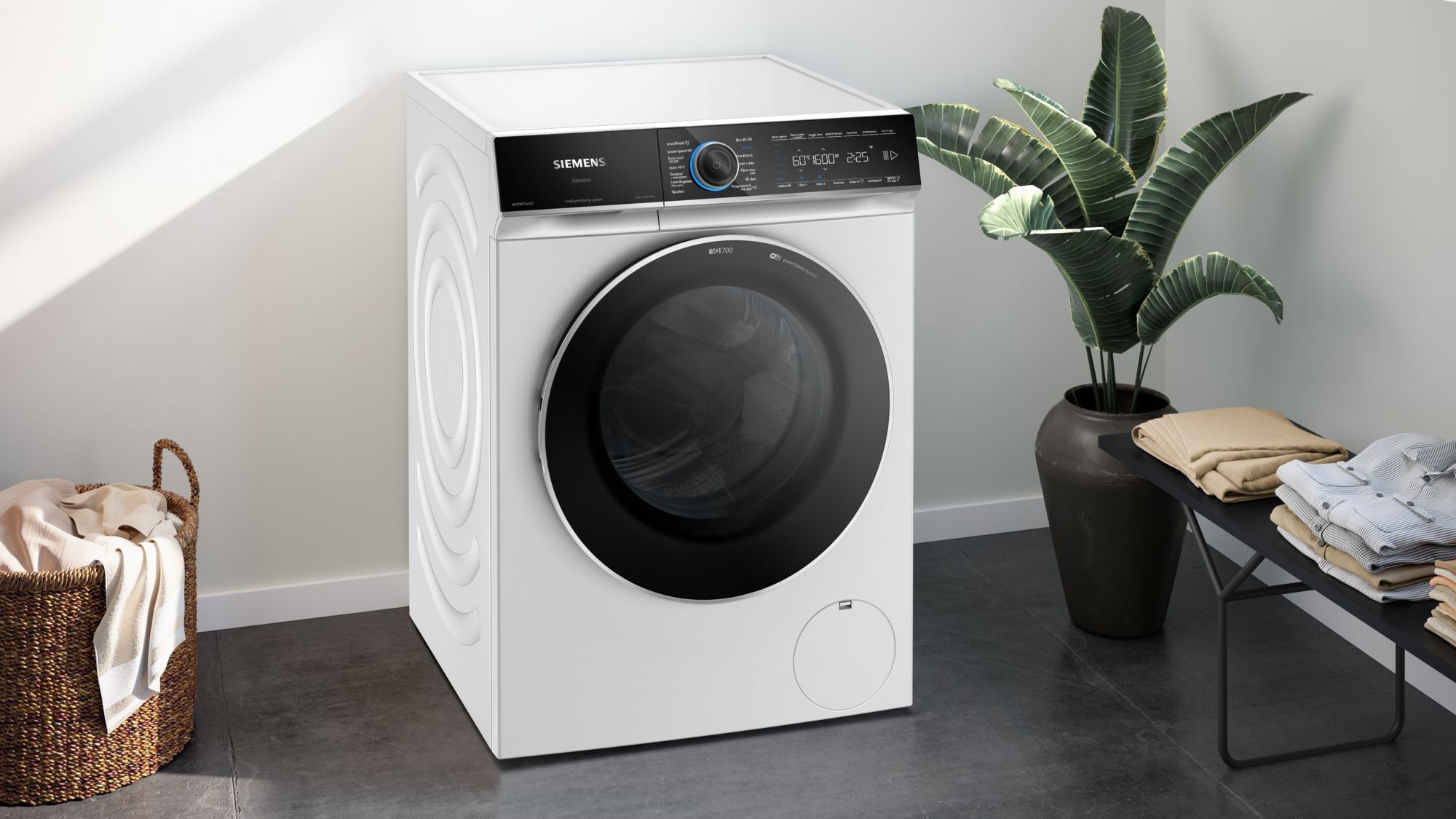 Deze slimme wasmachine is 30% energiezuiniger dan energielabel A**** en beschikt over antiVlekken, smartFinish, intelligentDosing en Wasmiddelscan via Home Connect.