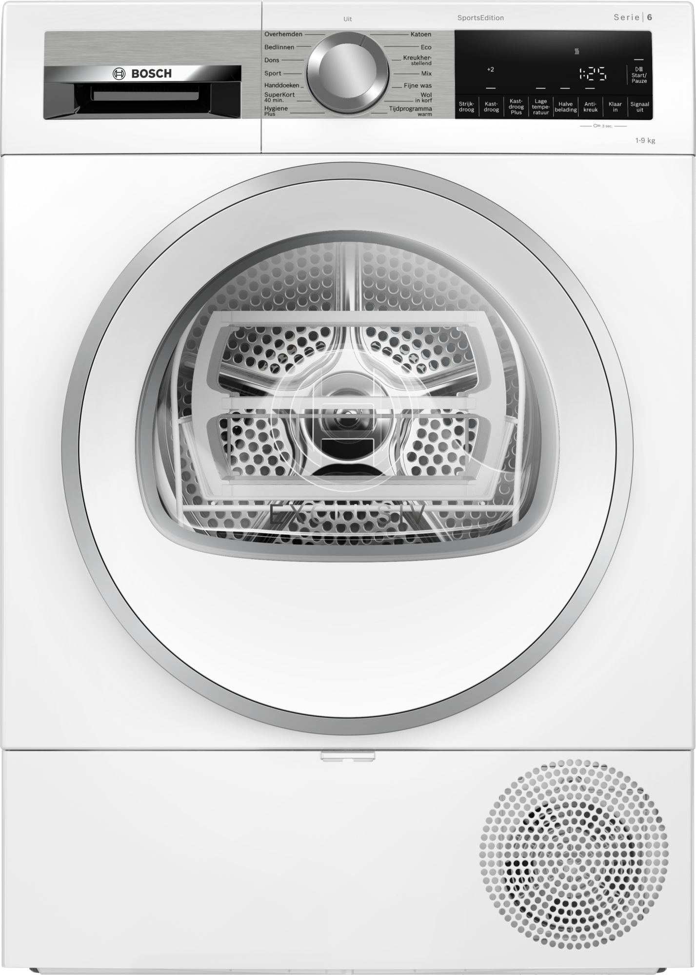 De warmtepompdroger met Auto Dry-sensor weet wanneer je wasgoed gereed is, wat oververhitting voorkomt en je kleding beschermt.