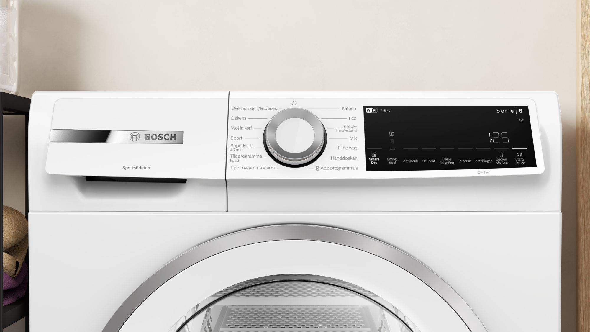 | Speciale programma's: Katoen, Overhemden, Katoen Eco, Fijne was, Handdoeken, Mix, SuperKort 40 min, Sport, Dekbed, Kreukherstellend, Wol in korf, Tijdprogramma koud, Tijdprogramma warm |