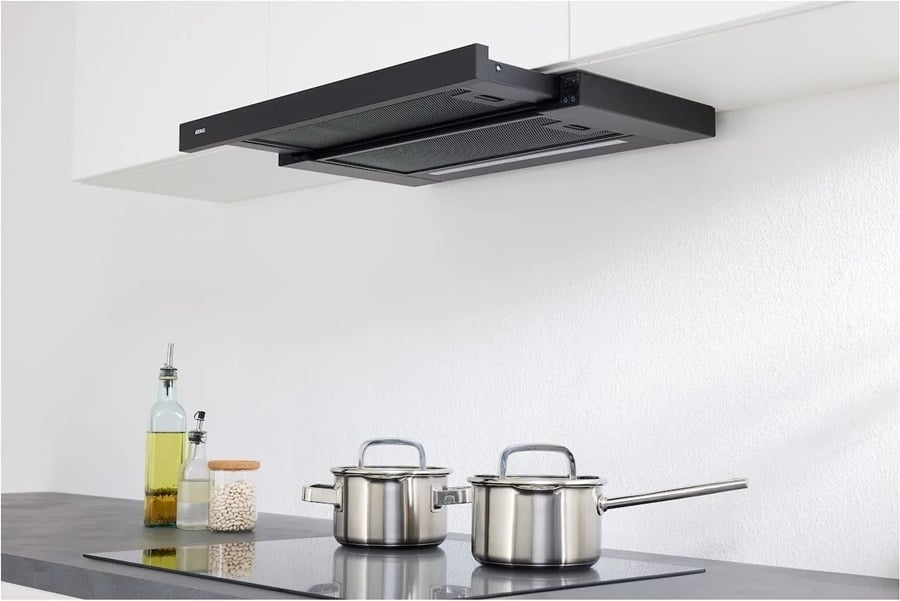 | Geschikt voor recirculatie | Als het niet mogelijk is de lucht via een afvoerkanaal naar buiten af te voeren, kun je kiezen voor een gemotoriseerd systeem dat afgezogen lucht filtert en weer terugvoert in de keuken; het recirculatiesysteem. Bij recirculatie wordt de lucht ná de vetfilters gezuiverd door kool- of fijnstoffilers en zo weer de keuken ingelaten. Energiezuinig omdat er geen warme lucht naar buiten wordt afgevoerd. |